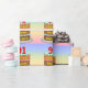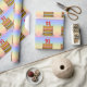 Dieses farbenfrohe und optimistische Geburtstagsthema-Packpapier-Design enthält eine Cartoon-Darstellung eines dreistufigen Geburtstagskuchens mit nummerförmigen Kerzen oben, die das Alter "91" zeigen, zusammen mit der Meldung "HAPPY 91ST BIRTHDAY" und einem bearbeitbaren Empfängernamen. Der Hintergrund hat ein buntes pastellfarbenes Regenbogenspektrum, das inspirierte Farbverlaufsmuster aufweist. Glückliche Geburtstags-Thema Packpapier wie dieses kann verwendet werden, wenn ein Geschenk oder Geschenk zur Feier des 91. Geburtstages von jemandem. [~Z0000622]