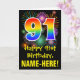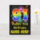91. Geburtstag: Fun Fireworks Muster + Regenbogen Karte