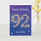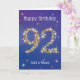 92. Geburtstag - 92. Stars - Blau - Alter 92 Karte
