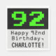 Dieses nerdige und geeky Geburtstagsthema Papier Serviette Design verfügt über einen großen grünen klassischen Computerspiel Stil Nummer "92" auf einem schwarzen Hintergrund. Es enthält auch die Geburtstagsgrüßbotschaft "Happy 92. Geburtstag", und einen bearbeitbaren Namen. Alberne und nerdige Papierservietten wie diese könnten bei einem Party nützlich sein, das zum 92. Geburtstag eines Computerprogrammierers, eines Wissenschaftlers oder jemandem gefeiert wird, der Retro-Videospiele wirklich mag. [~Z0000404]