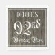 Dieses luxuriöse und verzierte Geburtstagsthema besticht durch einen individuelle Name und die Botschaft "92. Geburtstagsparty". Die große Zahl "92." und die Wörter "Geburtstagsparty" sind in extravagantem Skriptstil gehalten, und der Hintergrund weist ein Imitat/Imitation holznarbig inspiriert Muster auf. Eine extravagante Papierserviette wie diese könnte sich als nützlich erweisen, um bei einer Geburtstagsparty/Feier den zweiundneunzigsten Geburtstag von jemandem feiern zu können. [~Z0000564]