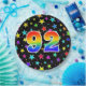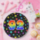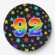 Dieses fröhliche, lustige und farbenfrohe Papier-Plattendesign zeichnet sich durch eine große Zahl "92" aus, die eine inspirierte Farbgebung des Regenbogenspektrums aufweist. Der Hintergrund weist ein buntes Muster von Sternen-Formen auf. Teller wie diese können in einem Party zum Feiern des zweiundneunzigsten Geburtstags von jemandem oder zum zweiundneunzigsten Geburtstag eines Ehepaars oder einer anderen 92. Veranstaltung verwendet werden. [~Z0000493]