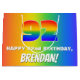 This exciting and cheerful birthday giftbag design features a large number “92” with a colorful rainbow spectrum inspired gradient pattern, along with the message “HAPPY 92nd BIRTHDAY,”, and a personalized recipient name. The background also features a fun multicolored rainbow spectrum inspired gradient pattern. Personalized birthday themed giftbags like this might be a fun way to wrap gifts or presents being given to somebody who is celebrating their 92nd birthday. [~Z0000577]