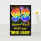 93. Geburtstag: Fun Fireworks Muster + Regenbogen Karte