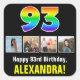 Dieses lustige und fröhliche Geburtstagskopfbild mit einer großen Zahl "93", die ein vielfarbiges Regenbogenspektrum inspiriert Farbverlaufsmuster hat, sowie die Meldung "Happy 93. Geburtstag" und ein benutzerdefinierbarer Empfängername. Es gibt auch Fotos, die personalisiert sein können, vielleicht mit Fotos des Empfängers, der Familie und Freunden des Empfängers und/oder dem/den Absender(en) eines Geschenks. Sticker wie diese können zum Feiern von jemandes dreiundneunzigsten Geburtstag benutzt werden. (Fotografie © Storytree Studios, Stanford, CA.) [~Z000670]
