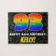 Dieses lustige und farbenfrohe Geburtstagstheater-Puzzle-Design zeigt eine große Zahl "93" mit einem farbenfrohen Regenbogenspektrum, inspiriert Farbverlaufsmuster, zusammen mit der Meldung "HAPPY 93. BIRTHDAY" und einem benutzerdefinierten Empfängernamen. Der Hintergrund hat ein fett gemustertes Muster von Notensymbolen mit verschiedenen Farben und Größen. Ein auffälliges, individualisierbares Geburtstagsrätsel wie dieses könnte zum Feiern des dreiundneunzigsten Geburtstages von jemandem gegeben werden. Diese können besonders sein, wenn diese Person Musiker, Komponist, Songwriter, Sänger oder andere Lieben ist. [~Z0000608]