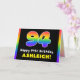 Dieses fröhliche und lebendige Geburtstagsthema Grußkartendesign weist eine große Zahl "94" auf, die ein buntes Regenbogenspektrum inspiriert Farbverlaufsmuster hat, zusammen mit der Meldung "Happy 94. Geburtstag" und einem personalisierten Empfängernamen. Die Innenseite verfügt über eine benutzerdefinierte Geburtstagsgrüßbotschaft oder könnte gelöscht und leer verlassen werden, wenn eine Nachricht von Hand geschrieben werden soll. Eine positive, personalisierte Geburtstagskarte wie diese könnte eine lustige Art sein, jemandem, der seinen vierundneunzigsten Geburtstag feiert, Geburtstagsgrüße zu schenken. [~Z0000631]