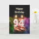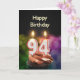 Ein Geburtstagskuchen mit Kerzen. Die Kerzen bestehen die Nr. 94, für einen 94. Geburtstag. Eine Geburtstagskarte passend für jeder.