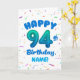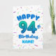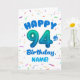 Celebrate their 94th birthday with a bright, cheerful, and personalizable birthday card! This custom name birthday card features a bold number ninety-four balloon and colorful confetti.