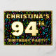 The front of this eye-catching ninety-fourth birthday party/celebration foil einladung card design feys a personalized name, a large number "94th", the message "BIRTHDAY PARTY!", and a border. The background of the front has a joyful, colorful pattern of musical symbos. The back feys personalized details about the event, such as the date, time, place/kommen, and any other useful information. Editable einladung like these might be a fun way to gast guests/attendes to a birthday gathering held in celebration of somebody's 94th birthday. These might be more meaningful if that person is a songwriter, a musician, singer, komponiert, or a lover of music. [~ Z0000601]