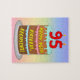 Dieses lustige und fröhliche Puzzle-Design zum Geburtstag zeigt einen Cartoon-Stil mit einer dreistufigen Geburtstagstorte mit numeralförmigen Kerzen auf der Spitze, die die Nummer "95" zeigt, sowie die Meldung "HAPPY 95 TH BIRTHDAY" und einen bearbeitbaren Empfängernamen. Der Hintergrund weist ein mehrfarbiges pastellfarbenes Regenbogenspektrum auf, das durch inspirierte Farbverlaufsmuster gekennzeichnet ist. Ein fröhliches, individualisierbares Geburtstagsrätsel wie dieses könnte dazu verwendet werden, jemandes fünfundneunzigsten Geburtstag zu feiern. [~Z0000621]