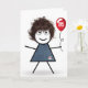 95. Geburtstag Strichfigur-Mädchen mit Red Balloon Karte