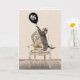 Graue Tabbattacke, die auf einem altmodischen Stuhl zum 95. Geburtstag auf einen schwarzen Ballon trifft. Text kann in jedem Alter geändert werden.