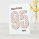 Eine sehr moderne 95. Geburtstagskarte. Diese Karte ist wirklich fabelhaft. Große Buchstaben in modernen Streifen auf blauem Hintergrund. Passen Sie Ihre individuelle Nachricht an.