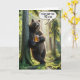 Ein Bär steht leise gegen einen Baum, der eine Tasse Bier mit einer Pfote in einem sonnenbeleuchteten Sommerwald hält, mit einer humorvollen Sprechblase zum 95. Geburtstag. Alle Texte können geändert werden und das Alter.
