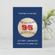 Ein Baseball auf dunkelblauem Hintergrund schmückt diese einzigartige und lustige 95. Geburtstagsfeier. Die Rückseite hat eine weiße Schrift auf einem roten Hintergrund. Sie können den Text leicht nach Namen, Alter, Ereignis, Datum usw. ändern. Sportfans werden es Liebe geben! Alle Rechte vorbehalten © 2014 Alan & Marcia Socolik.