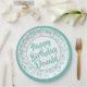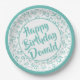 95. Party Random Number Pattern Aquamarin/weiß Pappteller