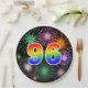 Diese farbenfrohe, fröhliche und lustige Papierplatte zeichnet sich durch eine große Zahl "96" aus, die ein inspiriertes Farbmuster mit einem Regenbogenspektrum aufweist. Es zeichnet sich auch durch ein lebendiges und aufregendes Feuerwerk inspiriert. Es hat einen schwarzen Hintergrund. Teller wie dieses könnten sich bei einem Party, das zur Feier des sechsundneunzigsten Geburtstags von jemandem abgehalten wird, zum sechsundneunzigsten Jahrestag oder zu einem anderen 96. [~Z0000490]