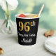 Dieses luxuriöse, raffinierte und stilvolle Geburtstagsdesign besticht durch eine große Ordnungsnummer "96." mit einem vergoldeten Aussehen von Imitationen/Imitaten, die Geburtstagsgrüßbotschaft "Happy 96. Geburtstag" und einen individuelle Name in einem Script-Stil-Schriftart. Es hat auch einen schwarzen Hintergrund. Papiertassen wie diese können bei einer Geburtstagsparty zur Feier des sechsundneunzigsten Geburtstages von jemandem verwendet werden. [~Z0000538]