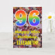 Die Front dieser bunten, rustikalen und Herbst-themenorientierten Geburtstagsgrußkarten-Ausrüstungsbeschreibungen eine große Nr. "96", eine Regenbogenspektrumsteigung habend, inspirierte Muster. Sie kennzeichnet auch die Mitteilung "glücklichen 96. Geburtstag," und einen kundengerechten Namen. Die Front kennzeichnet einen Hintergrund, der rustikales gefallenes Herbst-Blätter darstellt. Die inneren Eigenschaften eine personalisierte Geburtstagsgrußmitteilung oder konnten möglicherweise geklärt werden und verlassener freier Raum, wenn eine Mitteilung eigenhändig stattdessen geschrieben werden soll. Eine Geburtstagskarte so wäre möglicherweise eine Spaßweise, Geburtstagswünsche zu schicken jemand, das ihren neunzig 6. Geburtstag feiert. [~Z0000384]