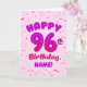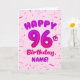 Celebrate their 96th birthday with a bright, cheerful, and personalizable birthday card! This custom name birthday card features a bold number ninety-six balloon and colorful confetti.
