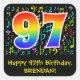 Dieses lustige, farbenfrohe und lebendige Geburtstagstickerdesign zeichnet sich durch eine große Zahl "97" mit einem inspirierten Regenbogenspektrum aus. Es enthält auch die Meldung "Happy 97 th Birthday", und einen personalisierten Namen. Ein Teil des Hintergrundes hat farbenfrohe Musiknoten und Symbolmuster. Spaß, essbare Geburtstagsaufkleber wie diese können als Geburtstagsgeschenk oder vielleicht als Geburtstagsgeschenk verwendet werden, oder vielleicht zum Umhüllen von Geburtstagsgeschenken, die zum Feiern eines Sängers, eines Komponisten, eines Musikers oder eines anderen 97. Geburtstages gegeben werden. [~Z0000423]