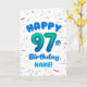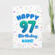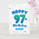 Celebrate their 97th birthday with a bright, cheerful, and personalizable birthday card! This custom name birthday card features a bold number ninety-seven balloon and colorful confetti.