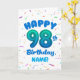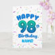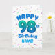 Celebrate their 98th birthday with a bright, cheerful, and personalizable birthday card! This custom name birthday card features a bold number ninety-eight balloon and colorful confetti.