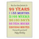 99. Geburtstagskarte, die die Jahre, Tage, Monate, Stunden und Minuten abzählt. Eine Karte, die zum Nachdenken anhält! Es wurden die Leap-Jahre berücksichtigt!