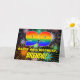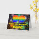 Die Vorderseite dieses fröhlichen und lebendigen Geburtstags-Thema Grußkarte Design zeigt eine große Zahl "99" mit einem farbigen Regenbogenspektrum inspiriert Farbverlaufsmuster, zusammen mit der Meldung "HAPPY 99. BIRTHDAY", und einem benutzerdefinierten Empfängernamen. Der Hintergrund der Vorderseite zeigt ein gewagtes, buntes Muster, das durch das Bersten von feierlichen Feuerwerken inspiriert wird. Die Innenseite verfügt über eine individuell anpassbare Geburtstagsgrüßnachricht, oder könnte gelöscht und links werden, wenn eine Nachricht von Hand geschrieben werden soll. Eine fröhliche, anpassbare Geburtstagskarte wie diese könnte dazu verwendet werden, jemandes neunundneunzigsten Geburtstag zu feiern. [~Z0000619]