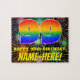 Dieses kühne und lebendige Jigsaw-Puzzle-Design zum Geburtstag zeigt eine große Zahl "99" mit einem farbigen Regenbogenspektrum, inspiriert Farbverlaufsmuster, zusammen mit der Meldung "HAPPY 99. BIRTHDAY" und einem bearbeitbaren Empfängernamen. Der Hintergrund ist ein optimistisches, farbenfrohes und bestechendes feierliches Feuerwerk-inspiriertes Muster. Ein spannendes, personalisiertes Geburtstagsrätsel wie dieses könnte genutzt werden, um jemandes neunundneunzigsten Geburtstag anzuerkennen. [~Z0000605]
