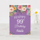 99. Geburtstag Wasserfarben Blume Lila Karte mit personalisiertem Namen und Alter. Für weitere Anpassungen klicken Sie bitte auf die Schaltfläche "Anpassen" und verwenden Sie unser Designwerkzeug, um diese Vorlage zu ändern.