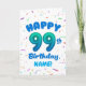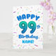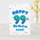 Celebrate their 99th birthday with a bright, cheerful, and personalizable birthday card! This custom name birthday card features a bold number ninety-nine balloon and colorful confetti.