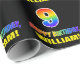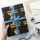 Dieses farbenfrohe, fröhliche und lustige Geburtstagsdesign zeigt eine große Zahl "9" und die Meldung "HAPPY BIRTHDAY", beide mit einem inspirierten Regenbogenspektrum-Farbverlauf, zusammen mit einem kühnen gelben benutzerdefinierten Empfängernamen. Der Hintergrund ist schwarz. So ein lustiges Packpapier könnte verwendet werden, wenn Geschenke umhüllt werden, die jemandem anlässlich seines 9. Geburtstages gegeben werden. [~Z0000475]
