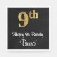 Dieses raffinierte, elegante und luxuriöse Geburtstagspapiere-Design verfügt über eine große Ordnungsnummer "9." mit einem Imitat/Imitation in goldinspiriert Erscheinung, plus der Geburtstagsgrüßbotschaft "Happy 9th Birthday" und einem individuelle Name in einem skriptartigen Schriftart. Der Hintergrund ist schwarz. Raffinierte Geburtstagsthemen wie diese können bei einer Geburtstagsparty zum neunten Geburtstag von jemandem verwendet werden. [~Z0000516]