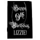 Dieses aufwändige und formelle Geschenktütendesign mit dem Thema "Happy 9th Birthday" in opulentem Text im Skriptstil auf schwarzem Hintergrund. Es hat auch einen personalisierten Empfängernamen. Eine Geschenktasche wie diese kann verwendet werden, wenn Sie ein Geschenk oder Geschenk zu Ehren von jemandem neunten Geburtstag. [~Z0000557]