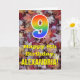 Die Vorderseite dieser farbenfrohen, herbstthematischen und naturlich inspirierten Geburtstagskarte zeigt eine große Zahl "9" mit einem inspirierten Regenbogengefälle, zusammen mit der Meldung "Happy 9th Birthday" und einem bearbeitbaren Namen. Der Hintergrund der Vorderseite der Karte weist ein rustikales, gefallenes Herbstblatt-Muster auf. Im Inneren befindet sich eine bearbeitbare Geburtstags-Grußnachricht, oder man könnte sie löschen und leer verlassen werden, wenn eine Nachricht von Hand geschrieben werden soll. Eine individuell anpassbare Geburtstagskarte wie diese könnte eine lustige Art sein, Geburtstagswünsche an jemanden zu senden, der gerade seinen neunten Geburtstag feiert. [~Z0000384]