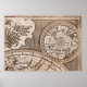 9 Panel Sepia Version de L'Isle World Map 3 Poster