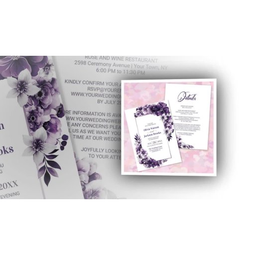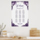 Helfen Sie Ihren Gästen mit dieser lila Blumenkarte, ihren Tisch zu finden. Es ist für eine Hochzeit mit 9 Tischen und bis zu 90 Personen geeignet.