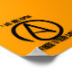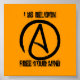 Orangefarbenes, schwarzes Poster mit atheistischem Symbol