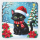 A Black Festive Cat with a Christmas Background Quadratischer Aufkleber