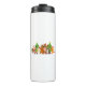 A group of cheerful Christmas characters, including Santa, a snowman, a reindeer, a bear, a penguin, and a gingerbread man, standing together with two festive trees. This image features a joyful assembly of holiday figures, all looking happy and ready for celebration. A cute illustration of beloved Christmas icons gathered as a festive group.