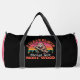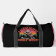 This humorous black and pink duffle bag features a cute beaver holding a log against a vibrant retro sunset, with the playful phrase "A CLEAN BEAVER Always Gets MORE WOOD." It’s a cheeky and fun design for those who enjoy double entendre and a good laugh. Perfect for anyone with a bold sense of humor or a fondness for beavers. Edit color of the bag caps and body in the Design tool to your favored colors.