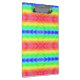 A clipboard with a colorful, kaleidoscopic rainbow pattern, featuring wavy, symmetrical lines in red, orange, yellow, green, blue, and purple tones.