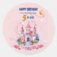 A fantasy design birthday card, with a princess castle all in beautiful shades of pink, complete with age and name