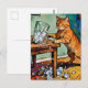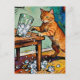 A cute ginger cat knocks over a glass of ice postkarte
