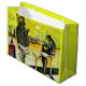 Original painting of two individuals are seated at a counter in a cozy diner. Bright yellow lighting illuminates the scene, creating a warm and inviting atmosphere. Painted by New York City, Fine Arts Artists, Gaye Elise Beda.