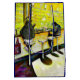 Original painting of two individuals are seated at a counter in a cozy diner. Bright yellow lighting illuminates the scene, creating a warm and inviting atmosphere. Painted by New York City, Fine Arts Artists, Gaye Elise Beda.