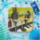 Original painting of two individuals are seated at a counter in a cozy diner. Bright yellow lighting illuminates the scene, creating a warm and inviting atmosphere.