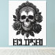 A detailed skull adorned with intricate patterns is surrounded by roses on a dark gray background. The word "ECLIPSED" is prominently displayed below in bold, gothic lettering.